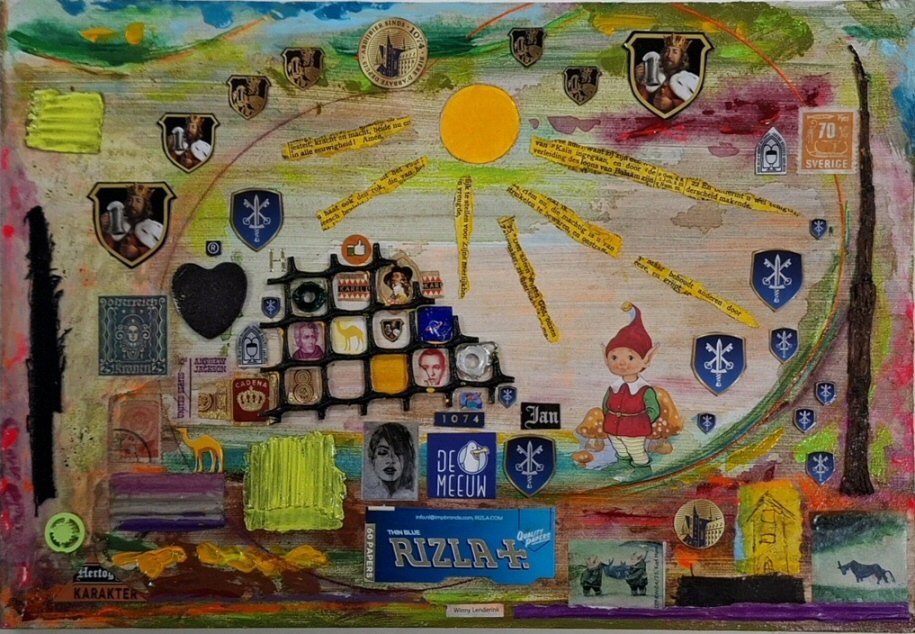 Junk betekent "afdanken" en Yard betekent "erf, hof, achterplaats".   Kijk om je heen en je ziet dat overal rommel wordt neer gegooid (De beschamende beschaving noem ik dat !).   Kurt Schwitters (1887 - 1948), Dada-ist van het eertse uur, raapte tijdens zijn wandeltochten overal buskaartjes, reclameplaatjes en andere rommel op om daarmee zijn collages te fabriceren.   Materie schilderkunst bestaat al vanaf het Dada-isme (1916 - 1920).   Evenals Objecten van afvalmaterialen in de sfeer van objects-trouve cq ready-mades (Marcel Duchamp 1887 - 1968).   Klik op de afbeelding voor een vergroting |